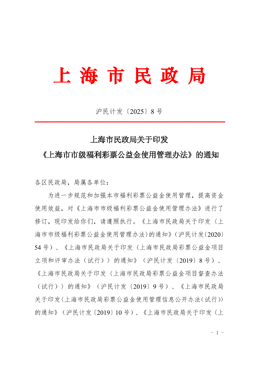 | 文件编号: | 沪民计发〔2025〕8 号 | 公开类别: | 主动公开 |