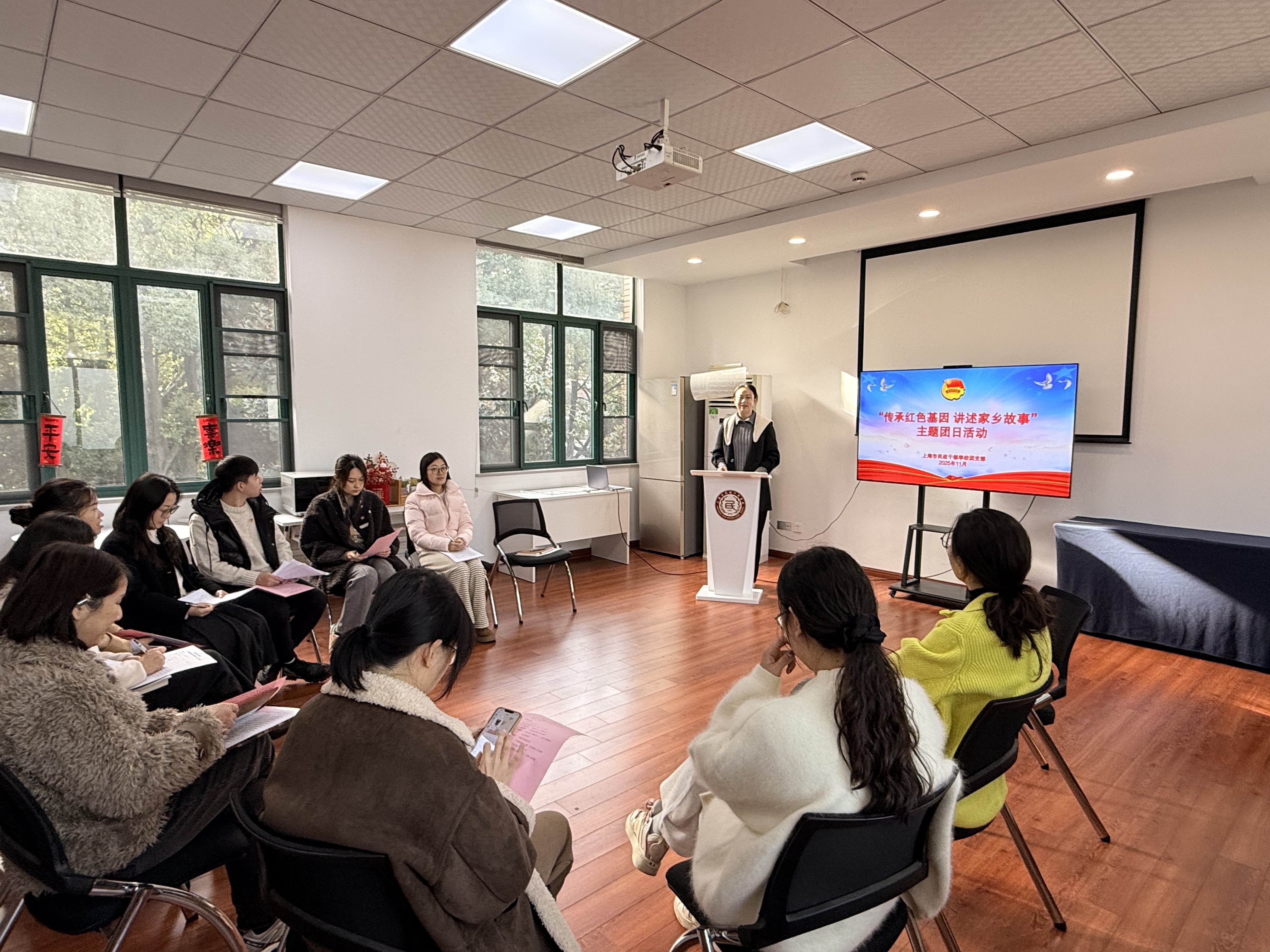活动中,团员青年们依次登台,声情并茂地讲述了一个个感人至深的家乡红色故事。从浙赣会战“血染兰江 英魂永存”的浴血抗争,到安徽铜东谢家祠堂“一座祠堂的红色传奇”所承载的党群同心鱼水情;从安徽广德暴动中王金林等志士“红色星火耀竹乡”的信仰坚守,到上海闵行抗战时期军民同心、不畏强暴的民族气节;从“巾帼英雄秋瑾”冲破封建桎梏、献身民族解放的壮烈人生,到“沂蒙六姐妹”党群同心、军民情深、水乳交融、生死与共的沂蒙精神,每一段故事都凝结着革命先辈的初心使命,每一个篇章都彰显着红色基因的时代力量。分享过程中,团员青年结合历史背景溯源解读、融入自身感悟深情抒发,一个个鲜活的革命形象、一段段震撼人心的奋斗历程,让现场听众仿佛置身于那段波澜壮阔的革命岁月之中。